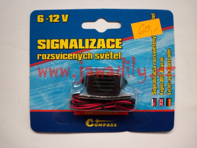 Při vypnutém zapalování akusticky signalizuje rozsvícená světla. Pro napětí 6-12 V.