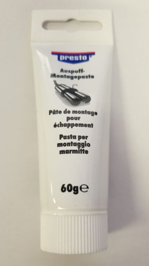 Montážní pasta na výfuky Presto je tmelovitá pasta pro utěsnění spár ve výfukovém systému, např. objímky, svorky a spony.