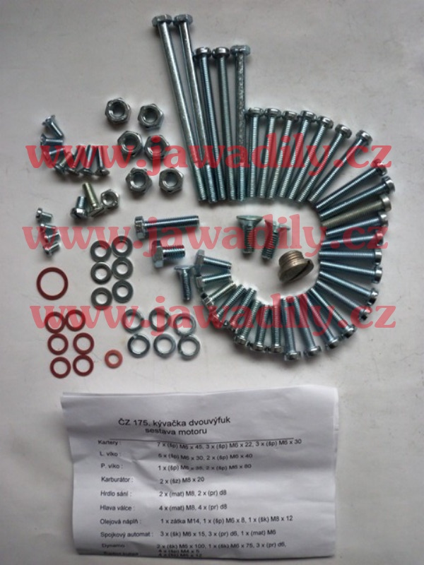 Sada šroubů motoru určená pro motocykly - Kývačka (dvouvýfuk).