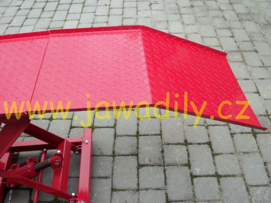 Hydraulická zvedací plošina na všechny skútry a motocykly. Díky vysoce kvalitnímu provedení je zaručena dlouhá životnost v každodenním použití. Zvedací plošina se optimálně hodí jako montážní místo pro skútry a motocykly všech značek. Stahovací třmen pro aretaci kola motocyklu, Odnímatelný nájezd, snadno ovladatelné nožní pedály které umožňují jednoduché zvedání a snadné spouštění motocyklu. Pojistný kolík zamezující náhlému poklesnutí motocyklu. Kolečka která zajišťují nejlepší možnou mobilnost zvedací plošiny a bezpečné umístění přesně tam, kam potřebujete.