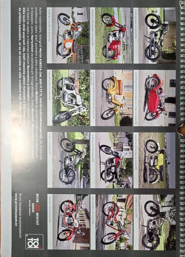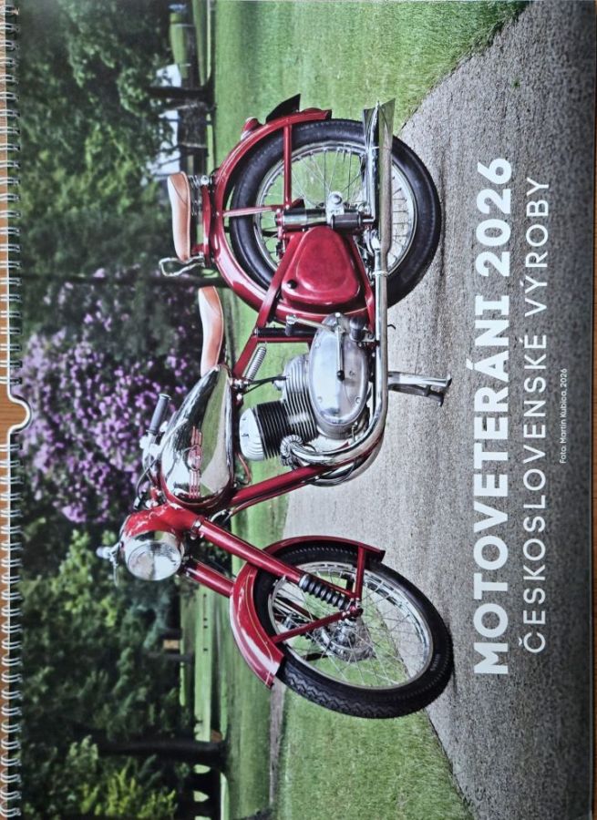 Kalendář obsahuje fotografie československých motocyklů, je určen pro rok 2026.
