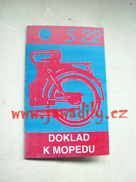 Doklad k mopedu určený pro motocykly Stadion S22.