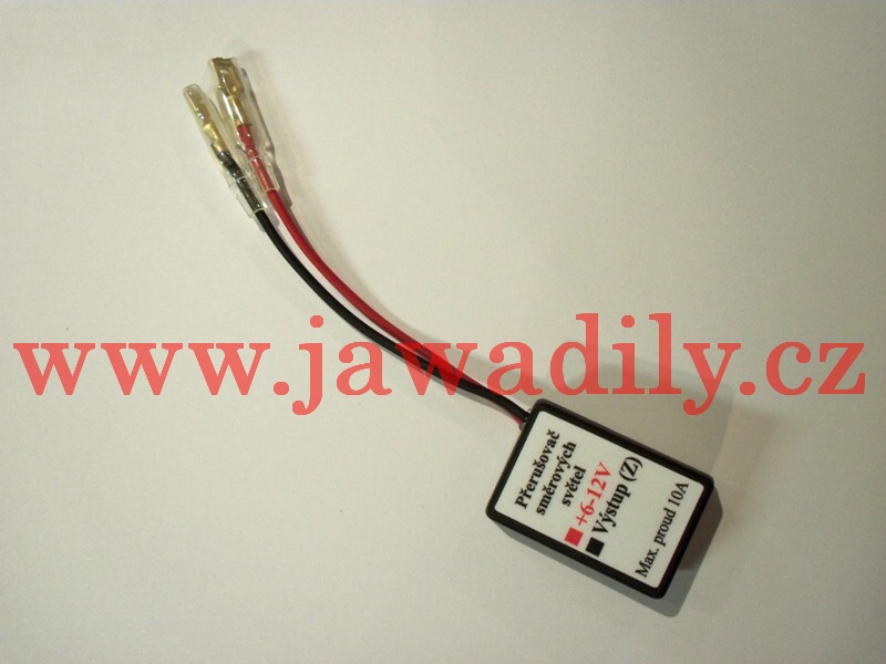 Elekronický přerušovač směrových světel vhodný jak pro 6V tak pro 12V elektroinstalaci. Jeho hlavní výhodou je nízký úbytek napětí, stabilní blikání a možnost připojení žárovek různých příkonů beze změny rychlosti blikání. Přerušovač je možno použít i pro LED blinkry.