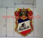 Jedná se o erb na zadní blatník, vlaječku na sedlovou trubku a malý znáček na nádrž.